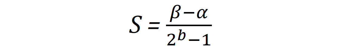 Formula for calculating the quantization function’s scaling factor (S) based on the clipping range (*[α, β]) *and desired bit-width (b). Image by author.**
