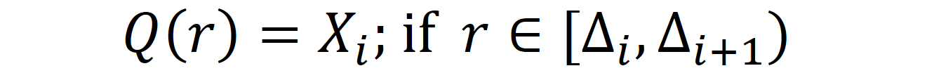 Non-Uniform Quantization formula, where Xi are quantization levels, and ∆i are the quantization steps. Image by author.