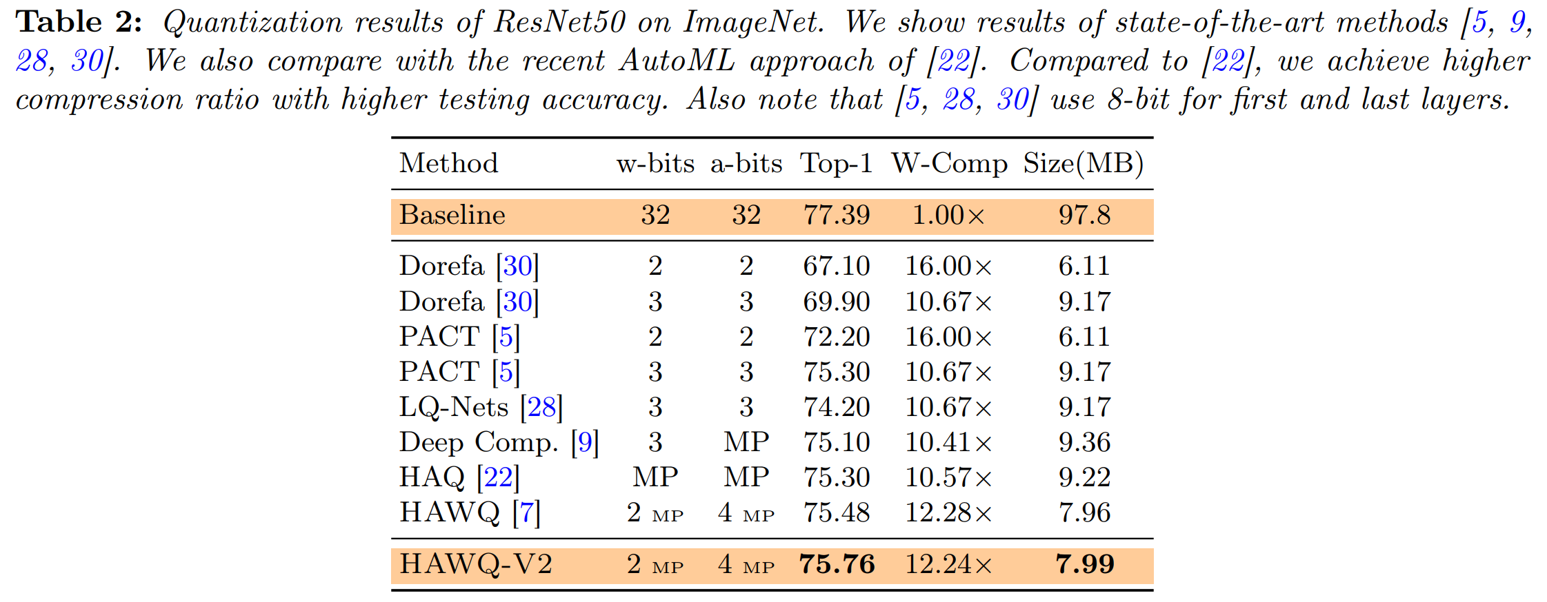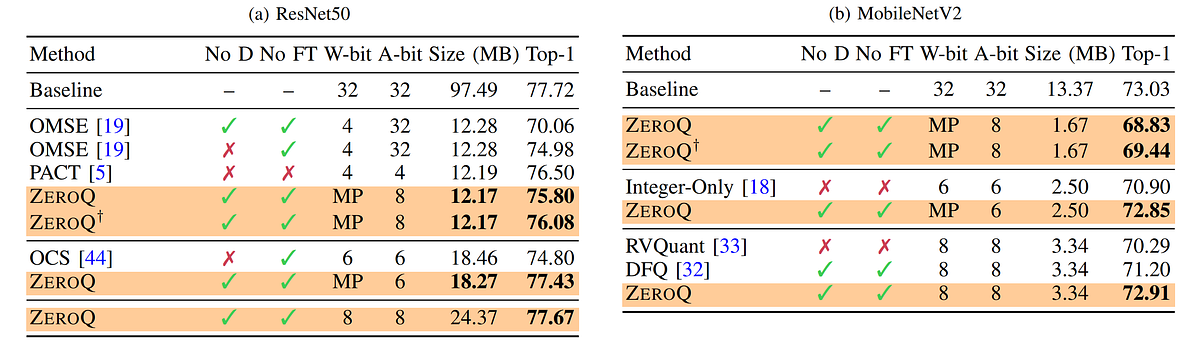 As we saw with pruning, a trained neural network’s performance is more sensitive to changes in some layers and submodules than others, and by measuring these sensitivities, entire pieces of neural networks can be removed without significantly affecting error. Intuitively, the same is true for varying levels of quantization, with some network components capable of being remapped to much lower bit widths than their counterparts. The most fundamental example of this we already mentioned: the use of 16-bit floats in less-sensitive network operations to substantially reduce memory footprint during training, but mixed-precision quantization can refer to any combination of different quantization levels throughout a network.
