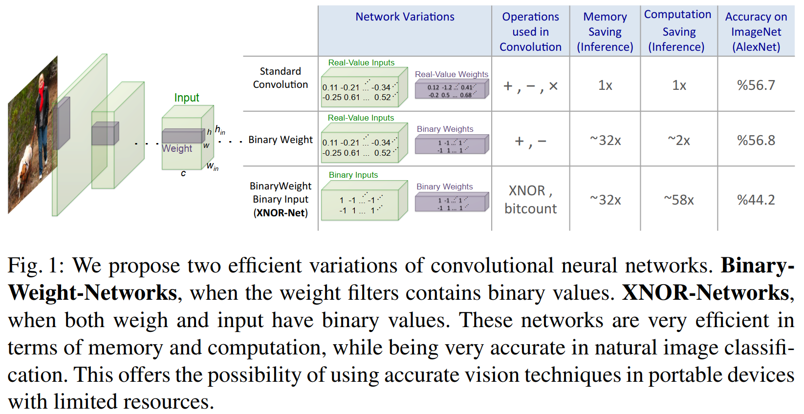 Later in 2017 Lin et al.’s “Towards Accurate Binary Convolutional Neural Network” (ABC-Net) paper sought to overcome the lack of representational power in binary networks by combining multiple sets of binary weights or activations to more faithfully represent the high-precision values, showing that by using 3–5 weight bases and 5 binary activations, the accuracy degradation on ImageNet can be reduced to 5% from baseline. The authors point out that while this requires the use of more bits, the scheme is preferable to using higher-bit fixed-point representation because it still avoids the need for the more complex arithmetic operators as the bitwise math is still done in binary. Their work marks the first time that binary neural networks reached comparable performance on ImageNet to full precision baselines, but their solution increases baseline BNN complexity by O(k * l), where k is the number of weight bases and l is the number of activation bases used, so there is a notable loss in efficiency.