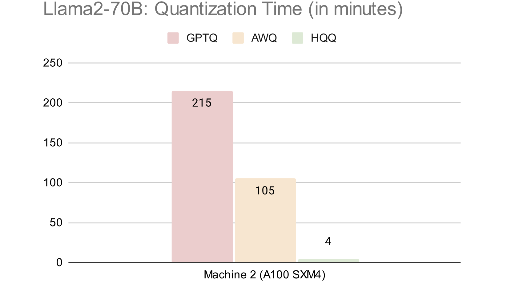 Compute time of HQQ compared with GPTQ and AWQ on the large LLaMA-2–70B model.