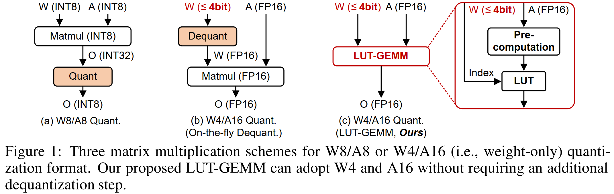 Chart from LUT-GEMM shows the benefit of avoiding the costly dequantization step by using the LUT system.