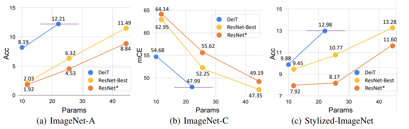 DeiT consistently outperforms ResNet on OOD samples with fewer parameters. Graphic courtesy of https://arxiv.org/pdf/2111.05464.pdf